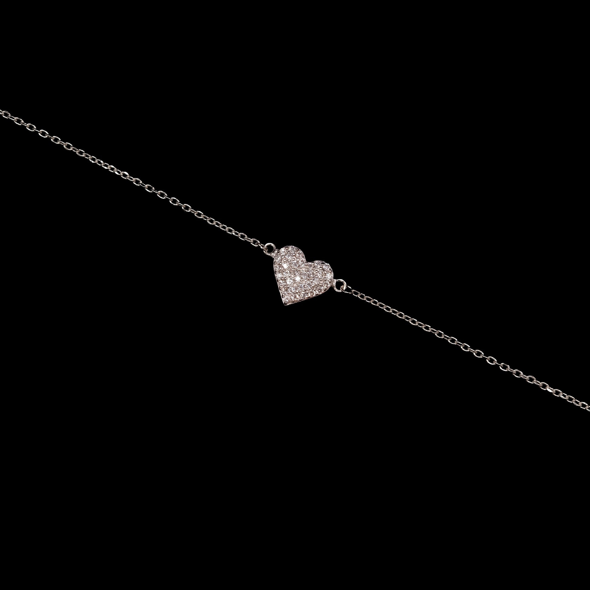 Timeless and radiant, the Amora Heart Silver Bracelet is crafted from genuine 925 sterling silver and finished with rhodium plating for exceptional shine and tarnish resistance. The pavé-set heart charm adds a soft, shimmering touch while maintaining a refined, minimal silhouette.
