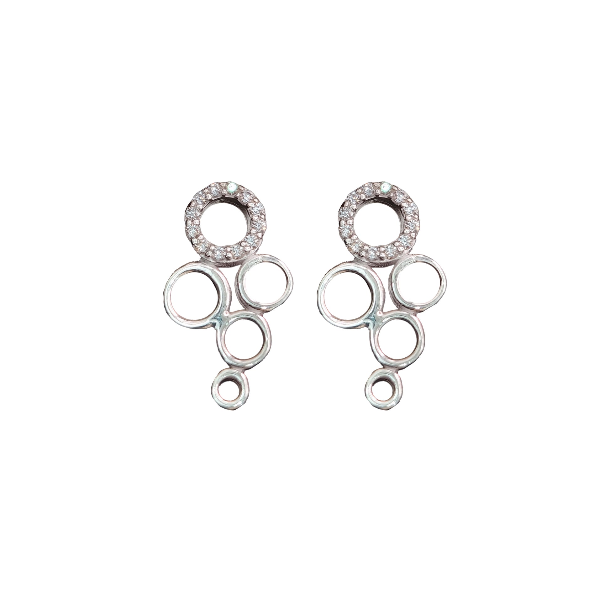 Refined and contemporary, the Cascade Circles Silver Drop Earrings are crafted from genuine 925 sterling silver and finished with a rhodium-plated coating for lasting shine and superior tarnish resistance. Featuring a delicate pavé-set circular top with cascading open-ring details, these earrings create graceful movement while maintaining a minimalist aesthetic.