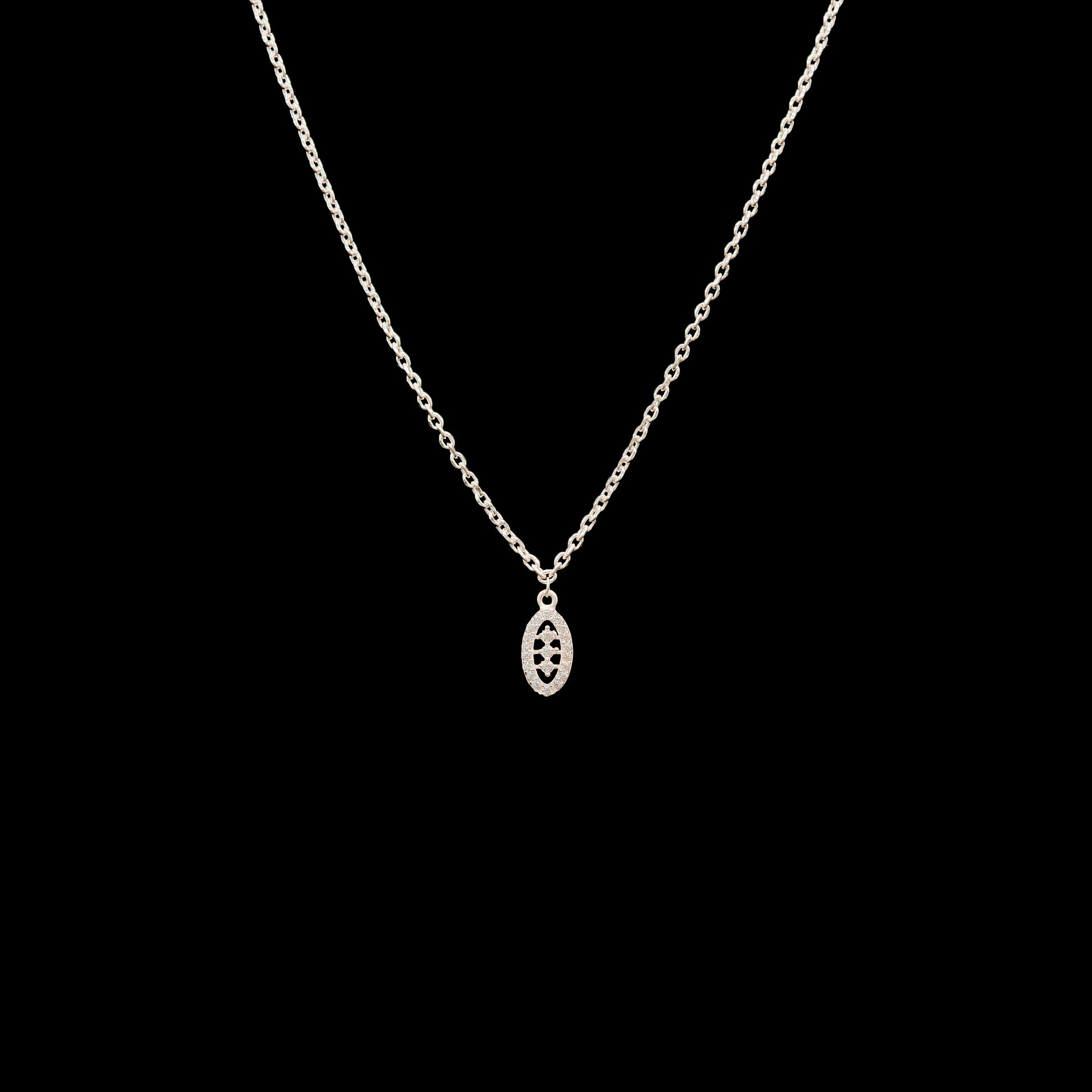 Crafted from authentic 925 sterling silver, the Eterna Oval Silver Pendant Chain features a refined open-oval pendant accented with a subtle, elegant sparkle. Finished with premium rhodium plating, it delivers enhanced shine, superior scratch resistance, and long-lasting brilliance.