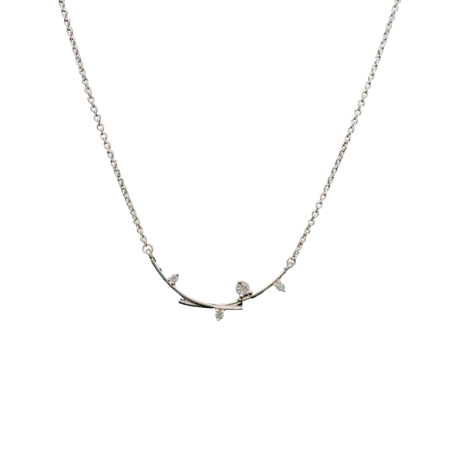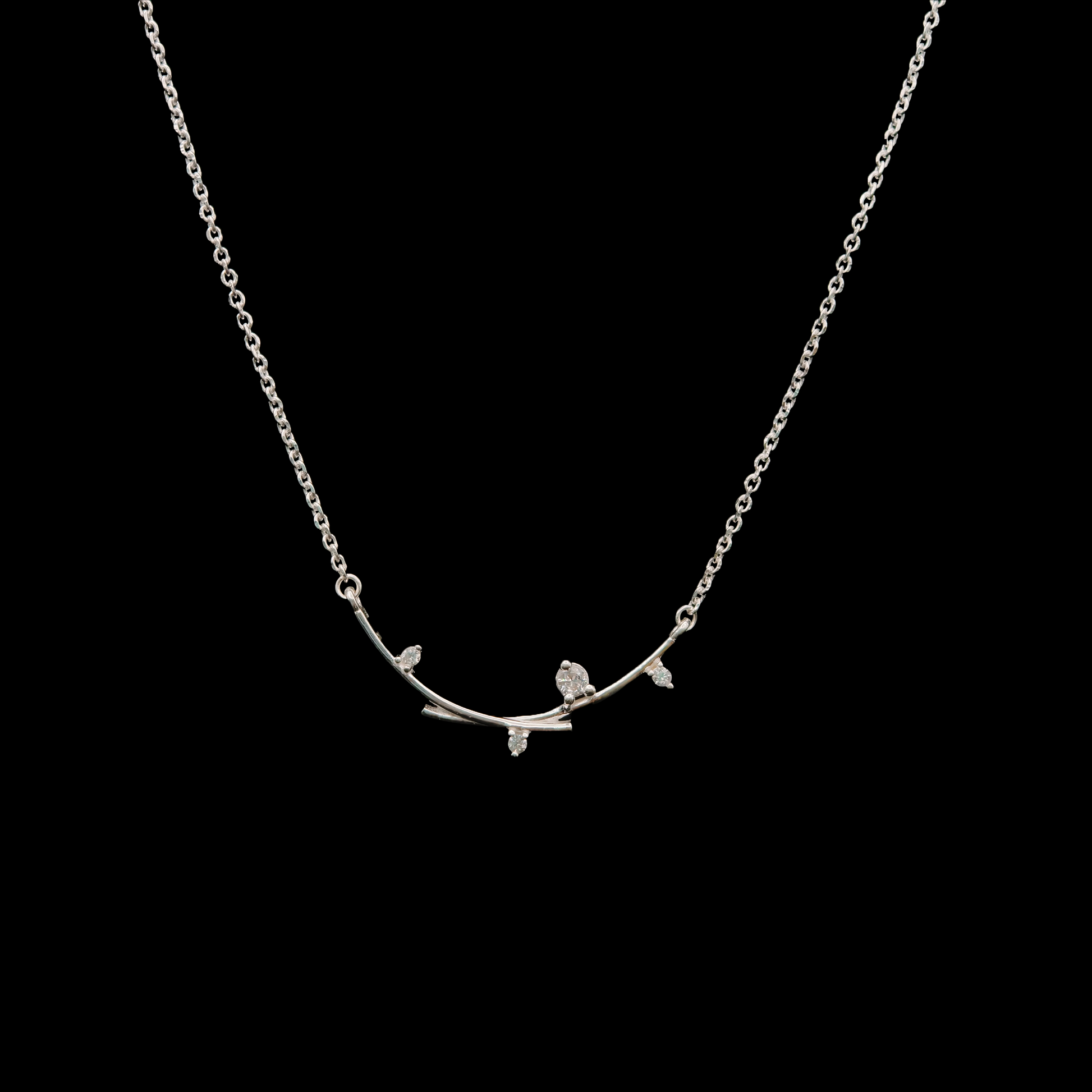 Inspired by nature’s quiet elegance, the Luna Branch Silver Pendant Chain features a softly curved bar design accented with delicate stone details, resembling a graceful branch in bloom. Its refined silhouette makes it a perfect expression of understated luxury.